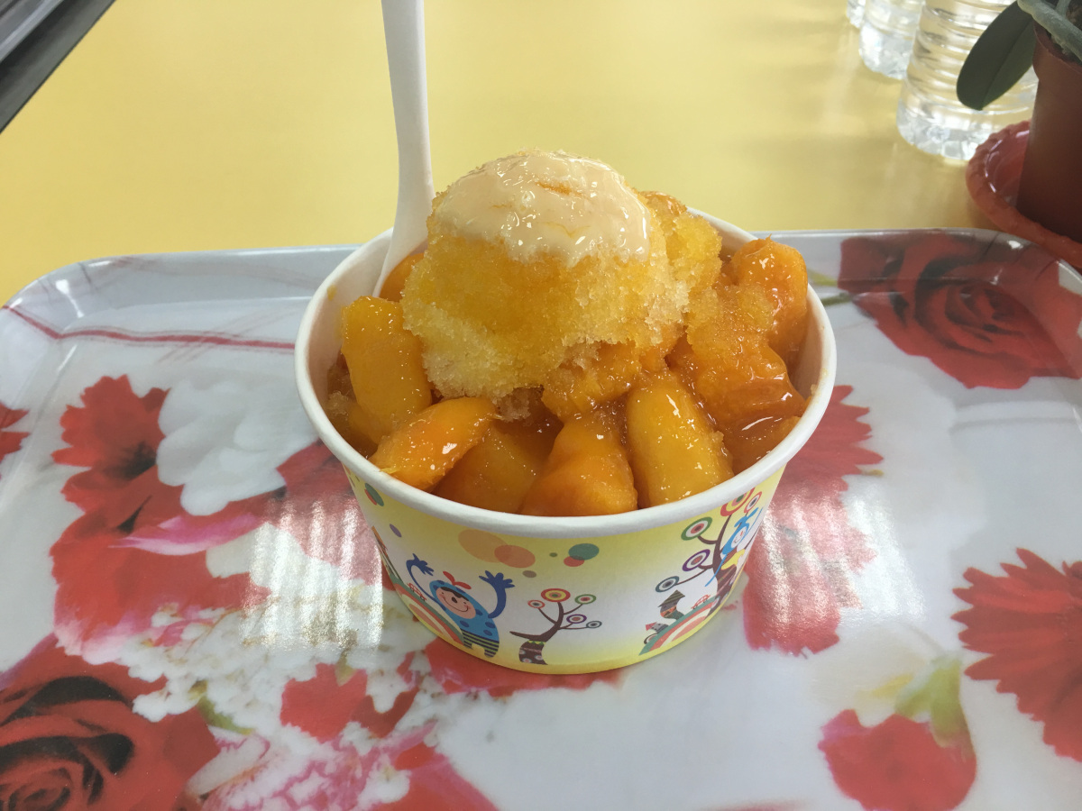 コンビニはだんだん減ってきているように見えますが、道の駅的な場所はそこそこ充実していて、今日もペースは順調なので、ちょっとしたドライブイン(死語?)的な場所で、芒果冰(マンゴーかき氷)を頼んで見ました。大と小があるというので、大をたのんだら、なんだかスーパーカップ5杯分くらいありそうなどでかいやつが来てしまいました。でもチャリ漕いだ後のアイスはとても美味しかったです。